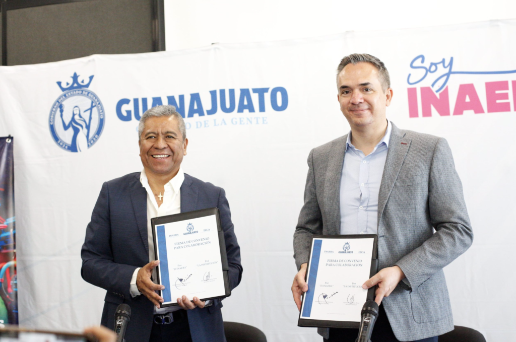 Con el objetivo de impulsar la capacitación y profesionalización de los guanajuatenses, el Instituto Estatal de Capacitación (IECA) y el Instituto de Alfabetización y Educación Básica para Adultos (INAEBA) firmaron un convenio de colaboración. El acuerdo fue suscrito por Salomón Ceballos Ochoa, director del IECA, y José Jesús Correa Ramírez, director del INAEBA, quienes coincidieron en la importancia de esta alianza para fortalecer el desarrollo educativo y laboral en el estado.