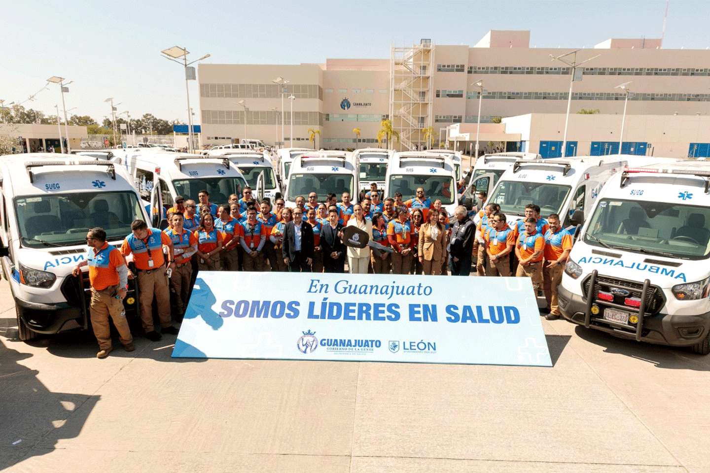 Como parte del fortalecimiento al Sistema de Urgencias del Estado de Guanajuato (SUEG), se realizó la entrega de 17 ambulancias de urgencias básicas equipadas, con una inversión de 32 millones de pesos, lo que permitirá mejorar la capacidad de atención, reducir tiempos de respuesta y ampliar la cobertura en situaciones críticas.