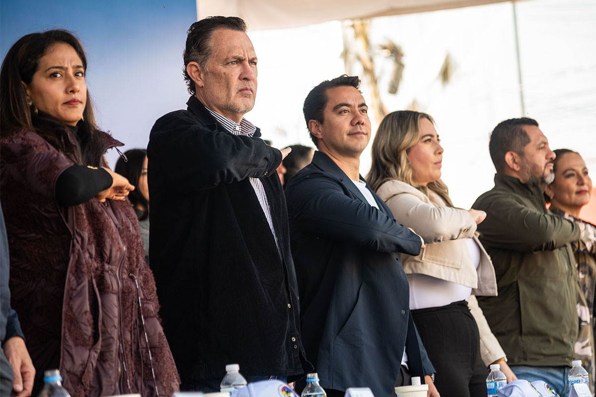 El gobernador, en compañía de la presidenta de la Mesa Directiva del Poder Legislativo, Andrea Tovar Saavedra; el presidente municipal de Querétaro, Felipe Fernando Macías Olvera; el fiscal general, Víctor Antonio de Jesús Hernández; el comandante de la XVII Zona Militar, Vinicio Perea Alcaraz; el coordinador estatal de la Guardia Nacional, Filiberto Oropeza Fabián, entre otras autoridades y representantes del sector educativo, presenciaron el desfile que dio inicio con la descubierta del escuadrón de motociclistas de la Secretaría de Seguridad Ciudadana.