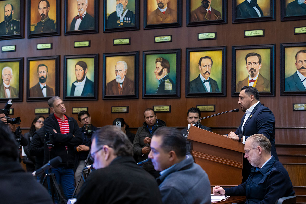 Durante la exposición de resultados, el secretario de Gobierno, Eric Gudiño Torres, subrayó que desde su dependencia trabajan todos los días para garantizar la gobernabilidad, fortalecer el diálogo social y asegurar que el marco jurídico sea un verdadero respaldo para la ciudadanía, generando acciones en materia de certeza jurídica que es, y seguirá siendo, dijo, el cimiento de la confianza que une a la sociedad, ejemplo de ello es la regularización y escrituración de 338 predios en el Fraccionamiento Fray Junípero Serra; así como el beneficio para mil 677 personas del Programa de Regularización de Predios, de origen urbano y rústico, del año 2022 a la presente fecha.
