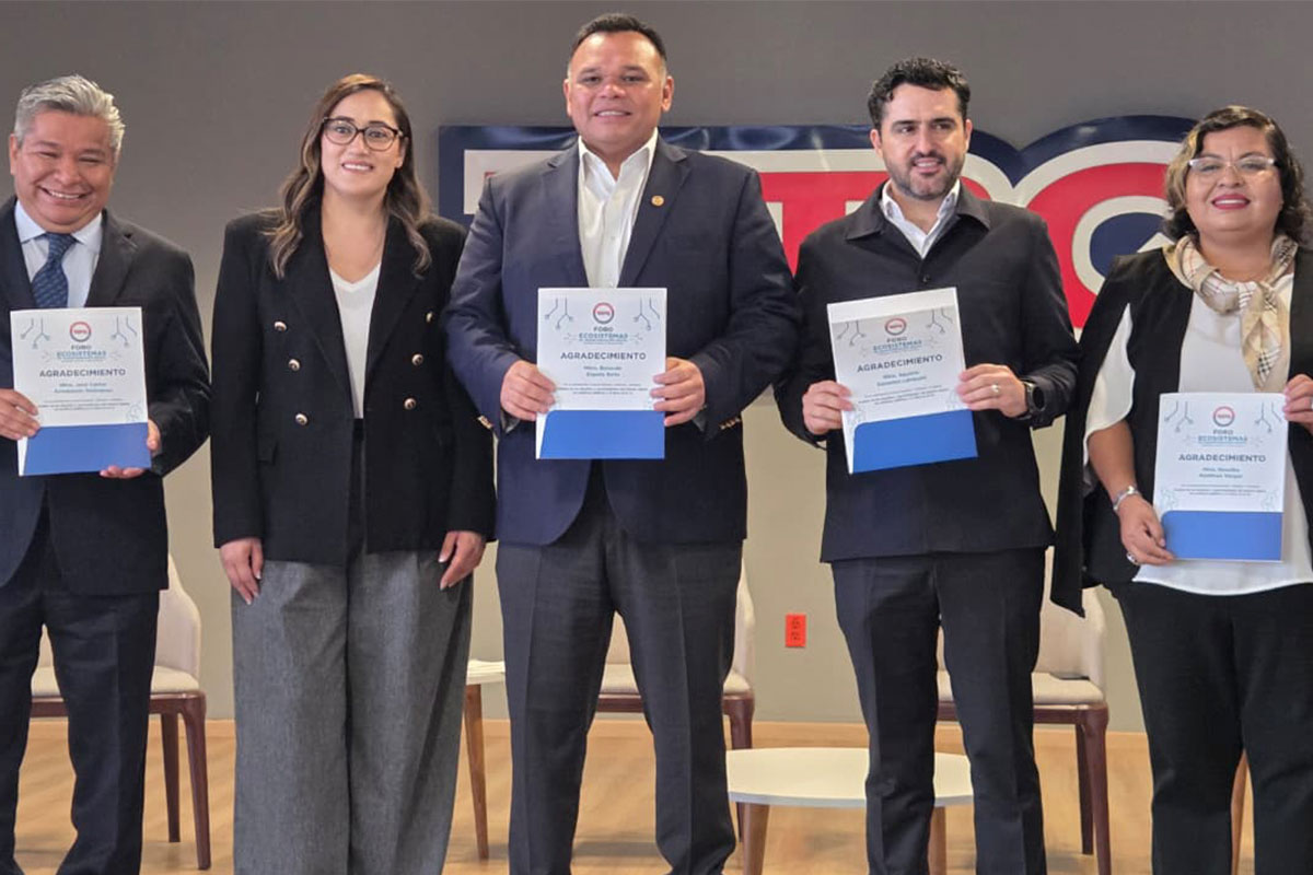 En el panel Industria-Gobierno-Academia en impulso de la IA, también participaron: Miguel Ángel Carapia González, Presidente del Clúster de Tecnologías de Querétaro; Rosalba Martínez Vargas, Directora Comercial de “Gaviota Morada”; Alfredo Trejo Diez Martínez, Director CQ CIAS; y Carlos Arredondo Velázquez, Director CONALEP y Presidente de la Comisión de Innovación, Tecnología y Vinculación de CANACINTRA.