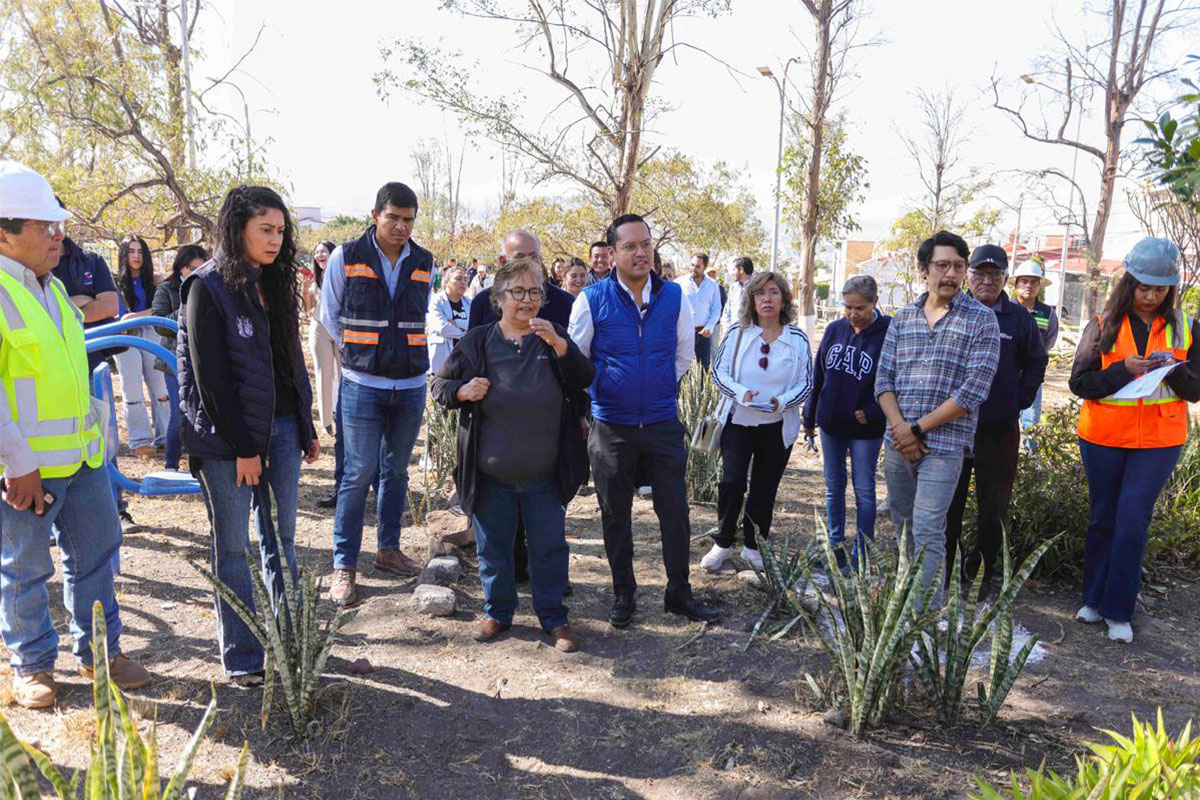 Los trabajos de rehabilitación comprenden la instalación del circuito perimetral adoquinado, seis rampas para personas con discapacidad, andadores interiores adoquinados, una rotonda central, áreas ajardinadas con dedo moro y pasto natural, bancas, botes para desechos, así como áreas de juegos y gimnasio al aire libre con pasto sintético.