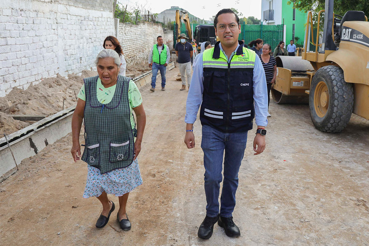 Posteriormente, el alcalde recorrió la calle Miguel Hidalgo en la colonia Ampliación Emiliano Zapata, donde también se llevan a cabo trabajos de urbanización mediante empedrado ahogado en mortero, así como la construcción de banquetas y guarniciones. Esta obra beneficiará a cientos de familias y usuarios del transporte públicos que diariamente transitan por esta vialidad, mejorando significativamente su entorno.