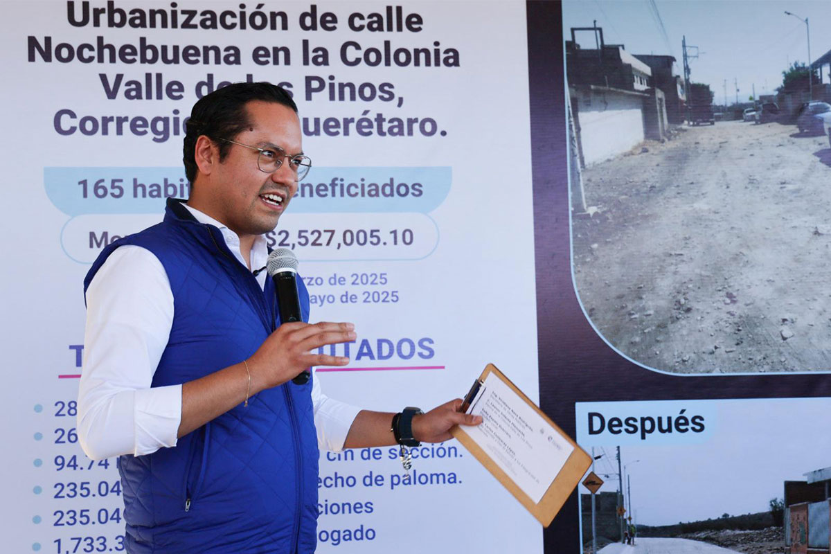 El presidente municipal de Corregidora, Chepe Guerrero, entregó la obra de urbanización de la calle Nochebuena en la colonia Valle de Los Pinos, una acción que mejora la movilidad, la seguridad y la calidad de vida de las familias que habitan en esta zona.