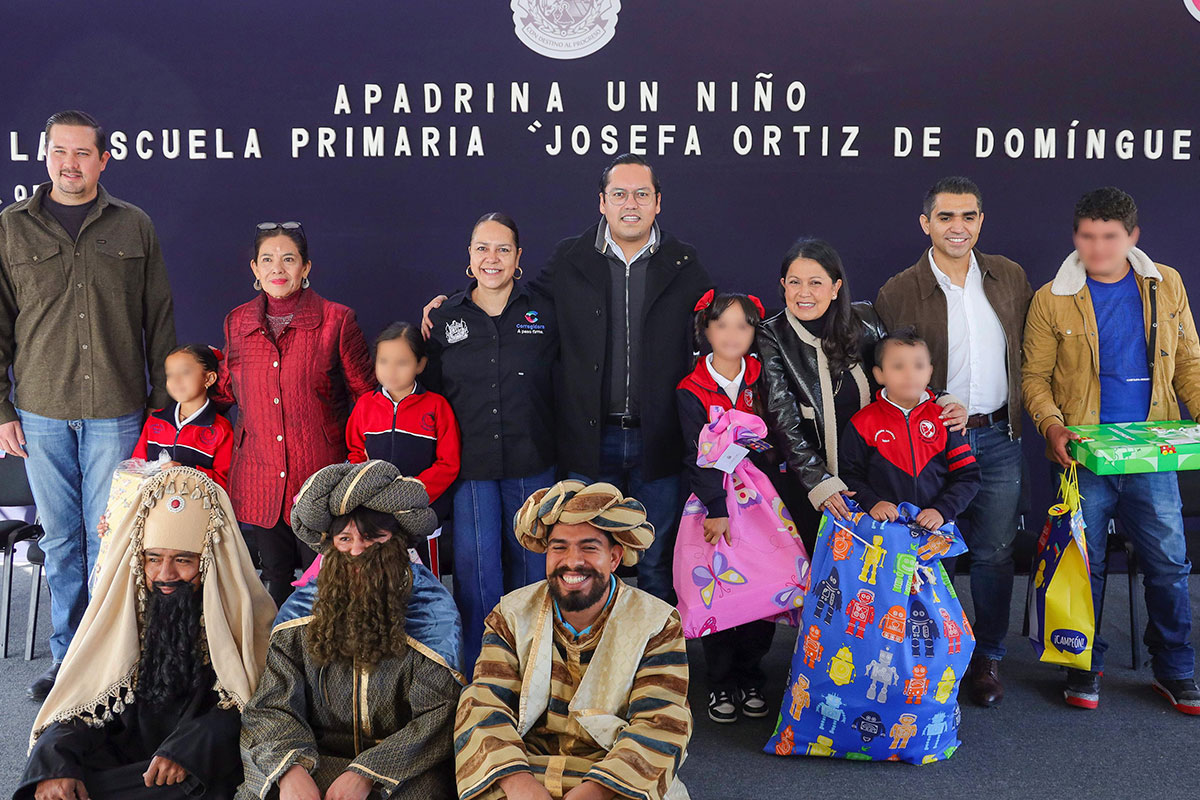 El presidente municipal de Corregidora, Chepe Guerrero, junto con los miembros de su Gabinete y regidores, entregaron juguetes y ropa a niñas y niños de la escuela primaria Josefa Ortiz de Domínguez en la comunidad de El Progreso, con quienes compartieron la tradicional Rosca de Reyes, como parte del programa ‘Apadrina un Niño’, organizado por segundo año consecutivo por parte del Sistema Municipal DIF Corregidora.