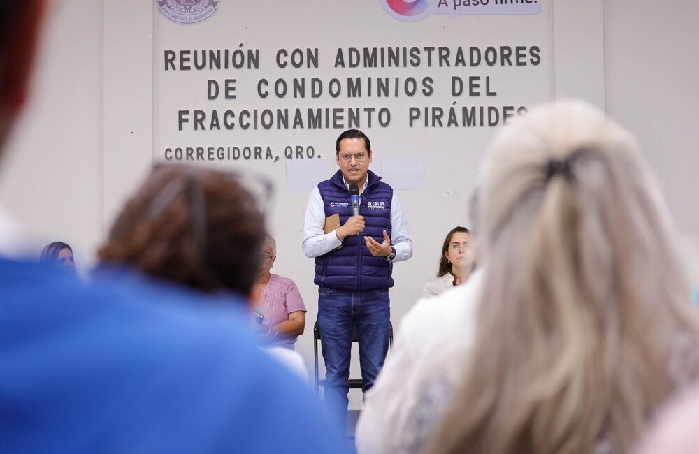 El presidente municipal de Corregidora, Chepe Guerrero, sostuvo reunión de trabajo con administradores de 31 condominios del fraccionamiento Pirámides para coordinar respuesta ante temporada de lluvias. El fraccionamiento ocupa una zona crítica en la parte más baja del municipio, lo que exige trabajos preventivos constantes de drenaje.