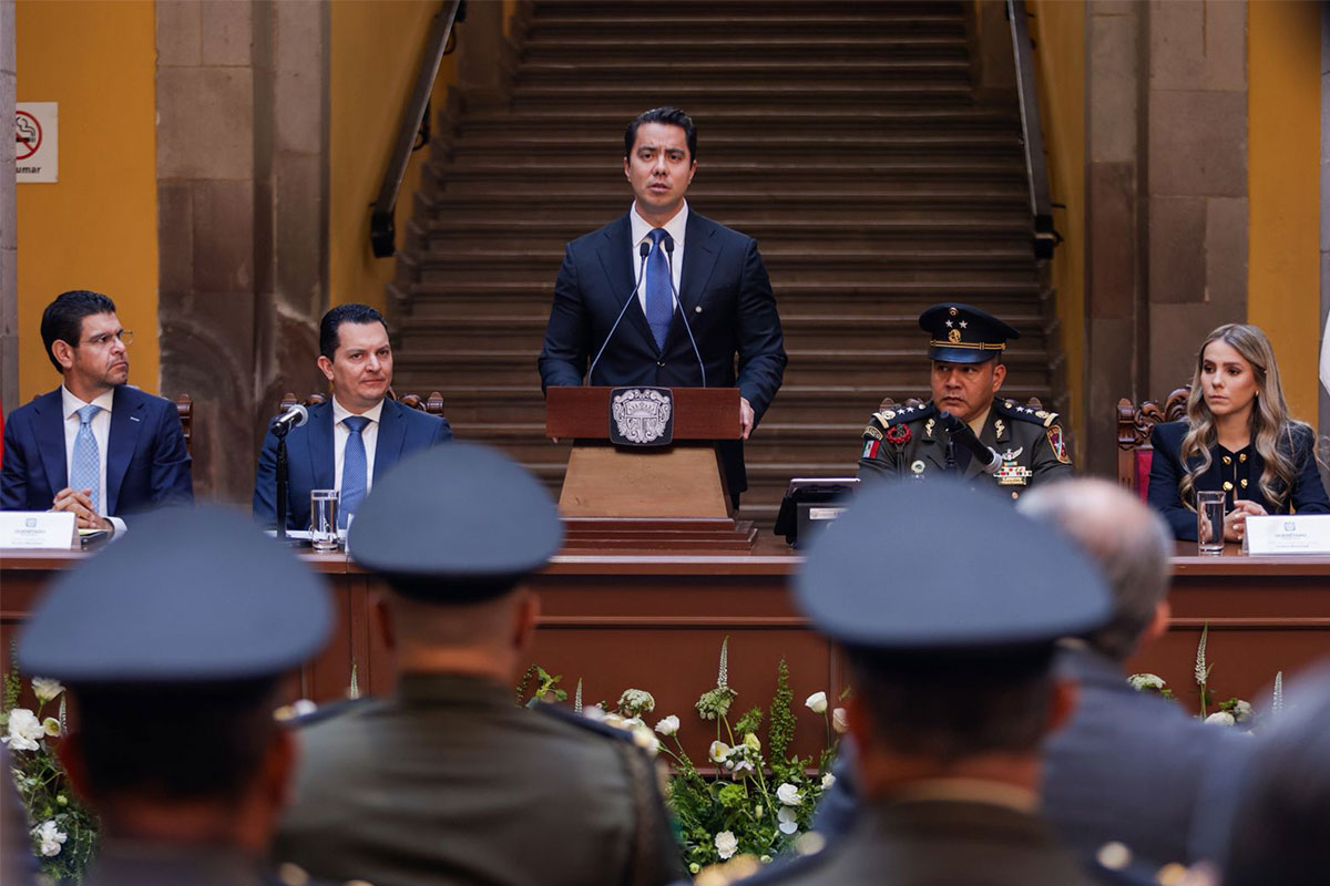 El presidente municipal de Querétaro, Felifer Macías, encabezó la sesión solemne de Cabildo en el marco de la conmemoración del Día del Ejército Mexicano, acto en el que el Ayuntamiento reconoció la labor de las fuerzas armadas por su entrega permanente en la defensa de la soberanía y la protección de las familias mexicanas.