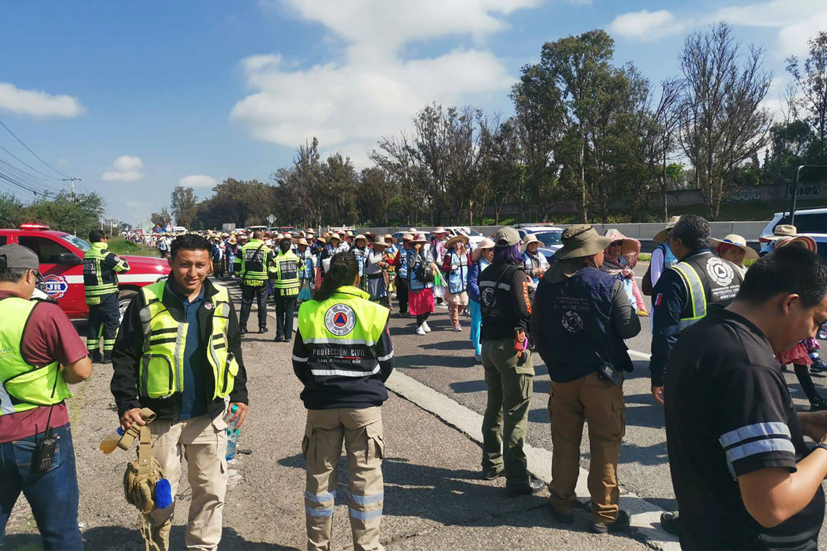Las peregrinas llegaron a San Juan del Río acompañadas de un contingente de emergencia y seguridad quienes durante todo su trayecto salvaguardaron su integridad.